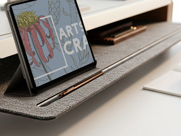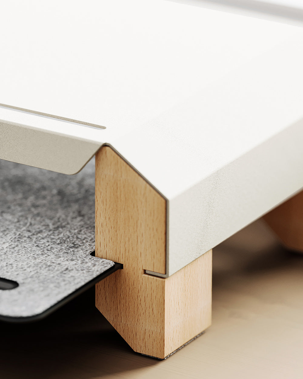 Experience the natural warmth of beech wood and the soft touch of felt, creating a workspace that feels as purposeful as it looks. Perfectly complements modern creative setups.