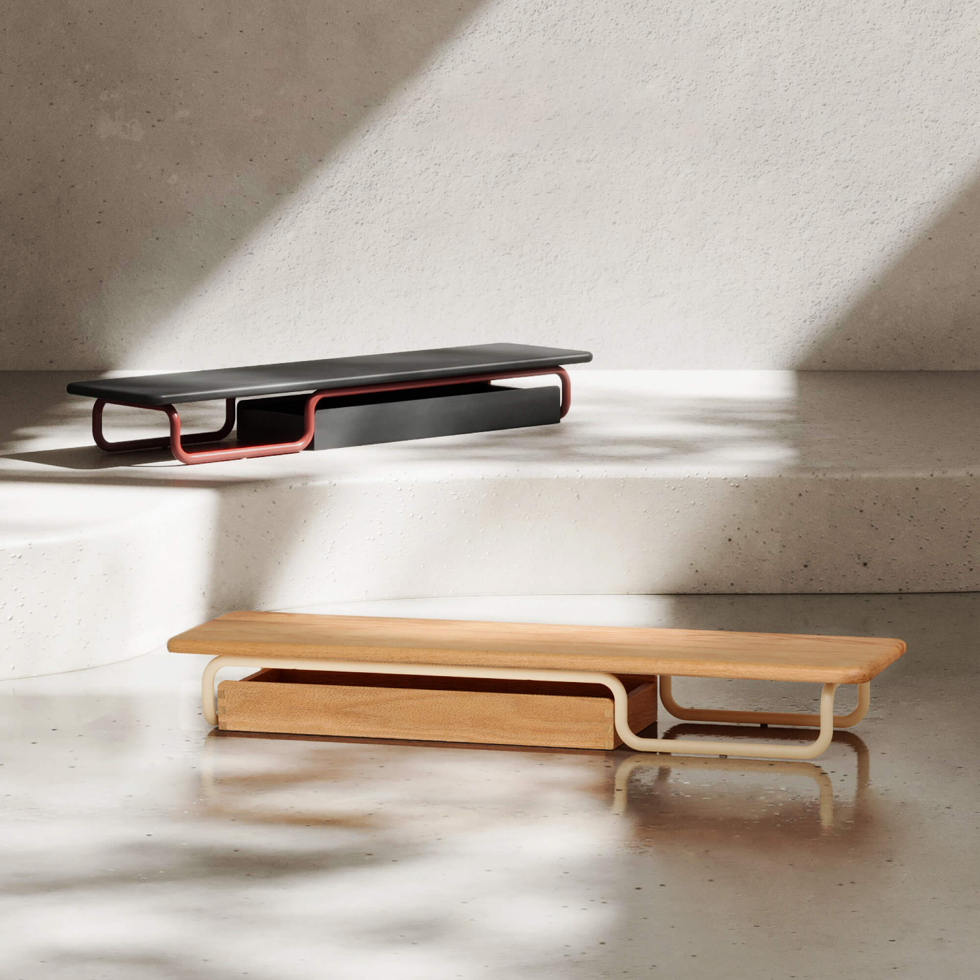 Blending red oak wood, flowing curves, and subtle metal accents, the Flux Series embodies balance and character—bringing thoughtful design and quiet sophistication to the modern workspace.