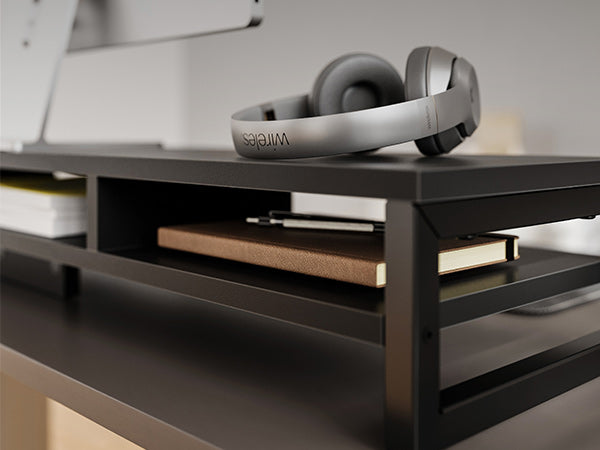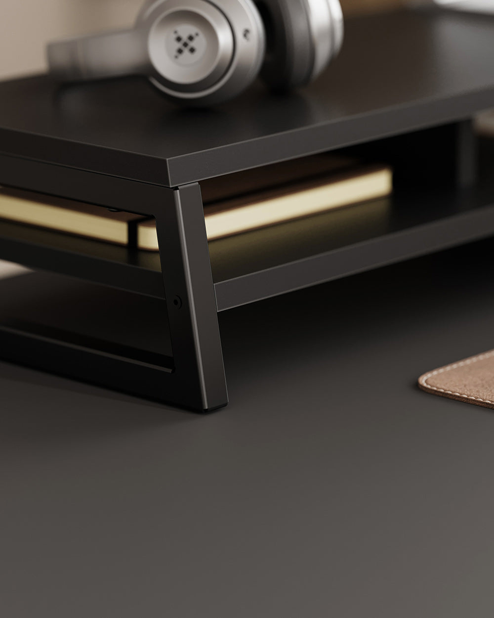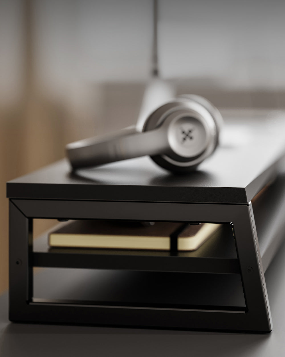 Designed with 3 open compartments across 2 tiers, Frida neatly stores daily accessories and cables—freeing up surface space and keeping your setup effortlessly organized.