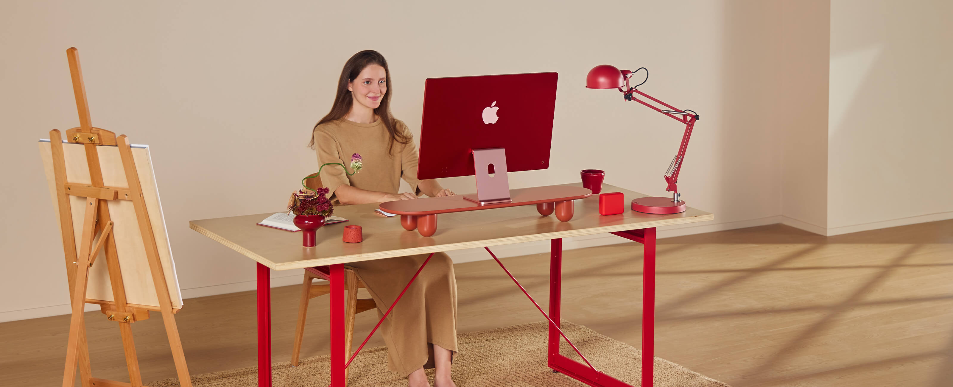 Featuring rounded legs and a smooth oval panel, the Nova H108 delivers minimalist elegance with a cohesive red finish that blends seamlessly into modern offices, gaming setups, or creative spaces.
