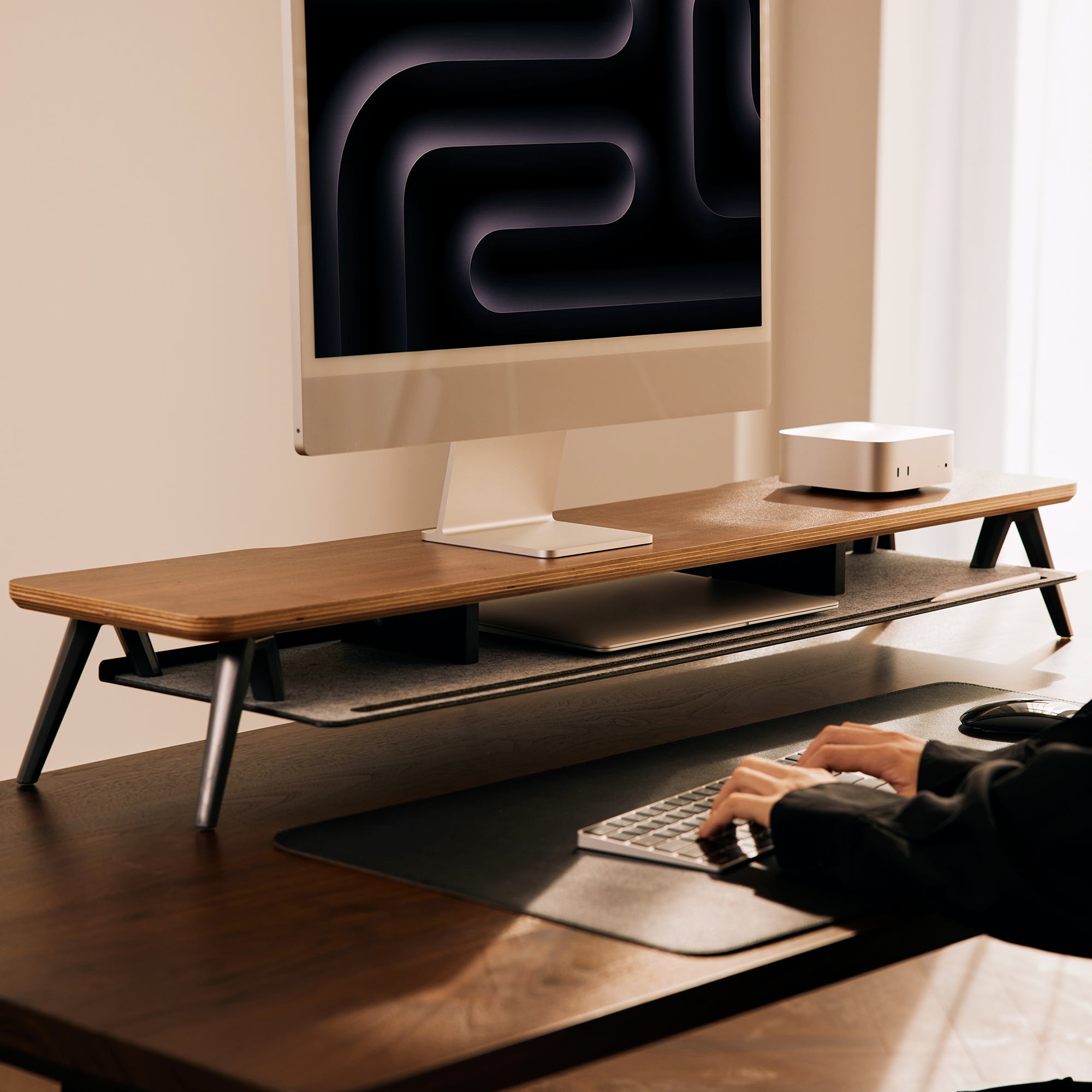 Raises your monitor to the perfect ergonomic eye level, reducing neck strain while creating space to tuck away your keyboard.
