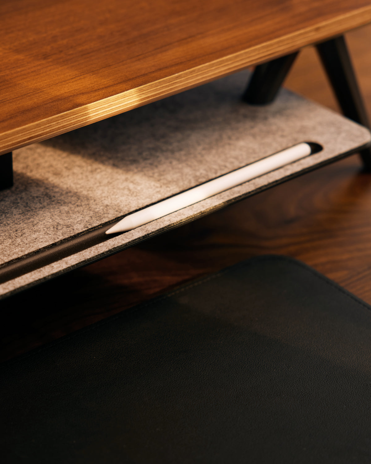 A precision-integrated felt groove keeps your phone and stylus accessible at a glance, yet perfectly organized.