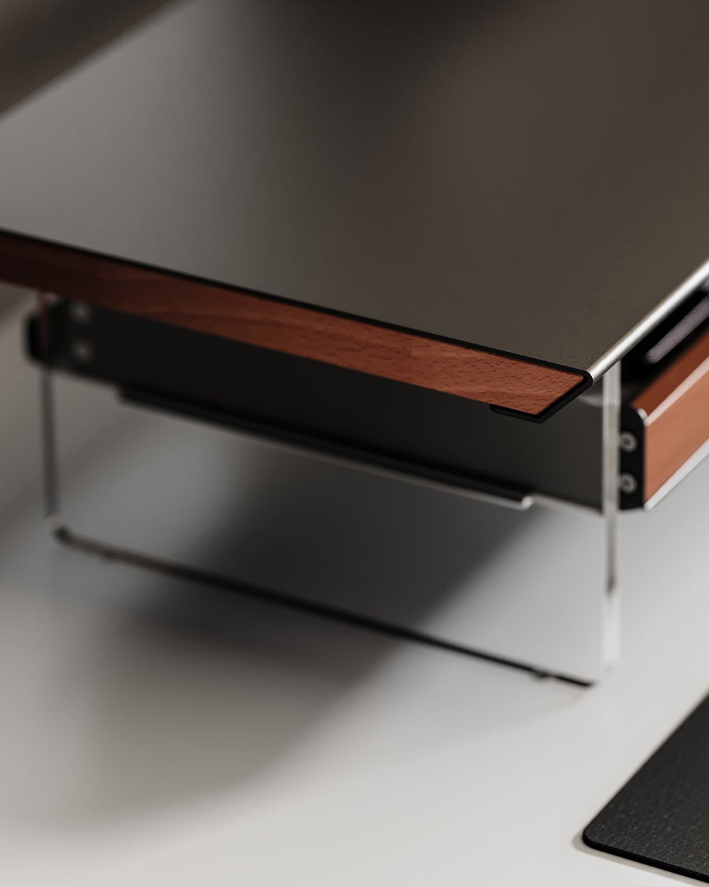 Crafted from premium beech wood with crystal-clear acrylic legs, Y310 brings lightness and warmth into perfect balance. A refined workspace centerpiece that embodies calm, clarity, and modern sophistication.